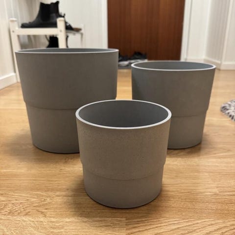 Den stora är 16 cm hög, 18 cm i diameter.