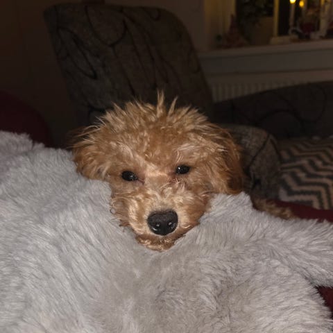 Mamma är en snäll o go double doodle på 50cm mankhöjd dvs en Labradoodle och Goldendoodle. Pappan är en vacker merle pudel på 37cm.