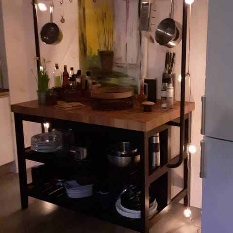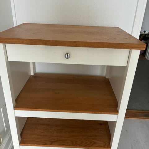 Skiva är 120 x160cm , 3 st skåp i lådor, 2st 50cm breda ochben är 40 Finns plats att sitta runt och justera måtet Alla handtag finns, fast dem inte finns på bilden