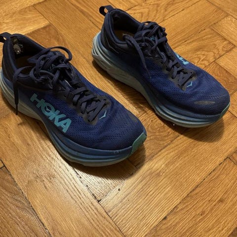 Neutralformade Bondi 8 skor (wide) från märket Hoka One One. Detta är en av deras mest dämpande modeller. Storlek 41.3.