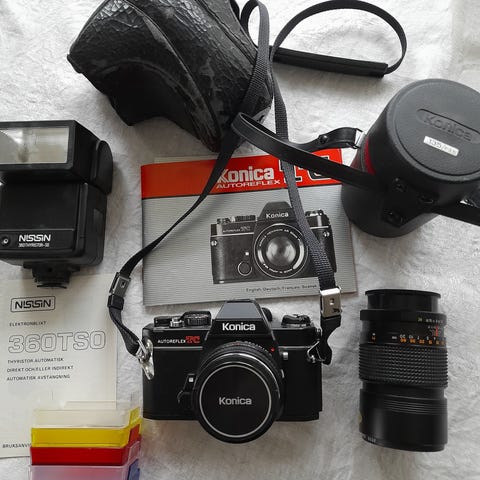 Jag har 1 Konica fc 1 kamera med 4 objektiv 28, 40, 135 och 200 mm +
