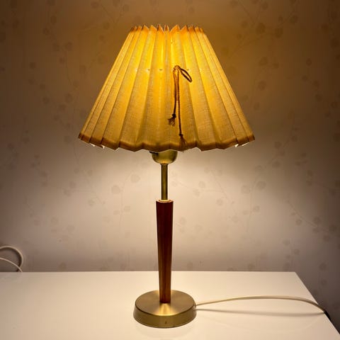 Bordslampa, teak, glas &mässing, märkta LECO 503, 1900-tal