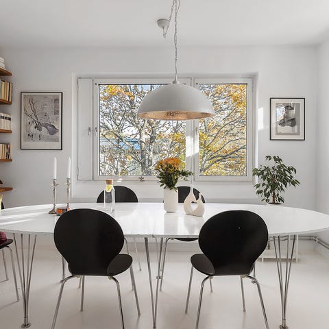 Utförande: Bordskiva i vit laminat med aluminiumkant. Underrede/spännben i krom.