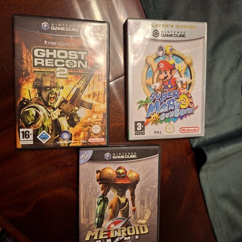 GC konsoll med kablar, minneskort och handkontroll 1000:-