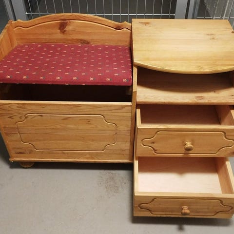 De 4 lådorna i mitten är sammanhällna av limmad träplugg