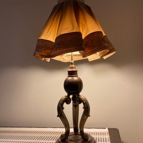 En antik bordslampa i fint skick.