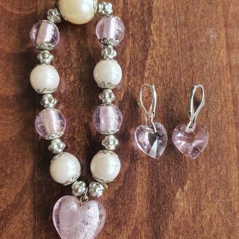 Rosa crystal, äktasilver örhängen och armband nytt. 600kr