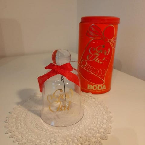 Nyckelord: glasklocka, dekorativ glasdesign, julklapp idé, vintage inredning, stilren dekoration, samlarobjekt, nordisk design, retro charm, symbolisk gåva, hemdekoration, festlig detalj, unik glasprydnad, tidlös elegans, presentidé, konstnärligt hantverk