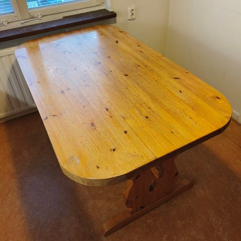Detta unika bord är skapat av bland annat 75 mm tjocka plankor.