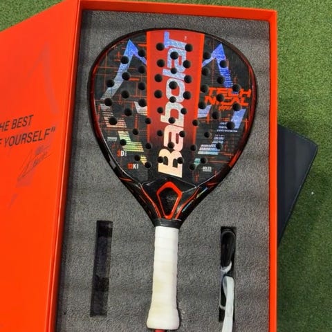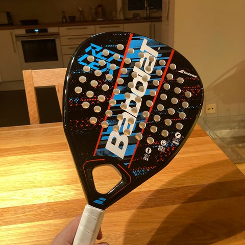 Mycket skön och lättspelad raket speciellt om du har haft armskada (typ tennis armbåge). Några få timmar speltid på den. Det finns några skav på ramen men inget som påverkar spelet.