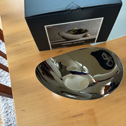 Skålen ”Bloom” från danska märket ”Georg Jensen”. Skålen är helt ny och aldrig använd.