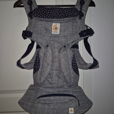Bärsele Ergobaby omni 360 coolair. Mindre lagning vid fäste för att ändra ”bredden” beroende på om barnet sitter framåt- eller bakåtvänt. Påverkar ej funktion.
