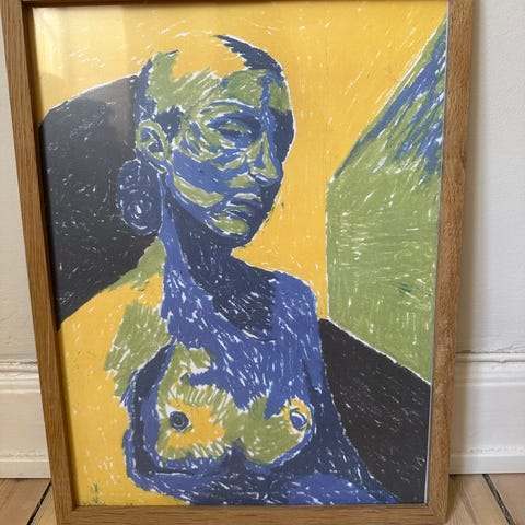 Painting by poppyart.co on instagram. The new price is around 1600kr and the frame is new from the poster club for 750kr. It’s in perfect condition and the frame (the colour is beige but it’s more like a “greige”) is good quality and made of glass.