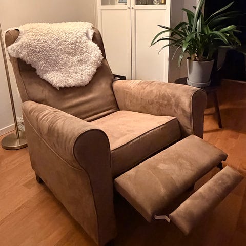 Fåtöljen är designad av Karl Malmvall för Ikea och heter Karlskrona.