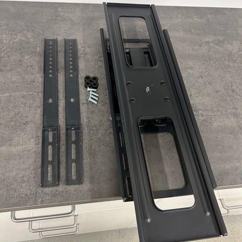 Hylla som skruvar upp fästet först o sen trär på hyllan.