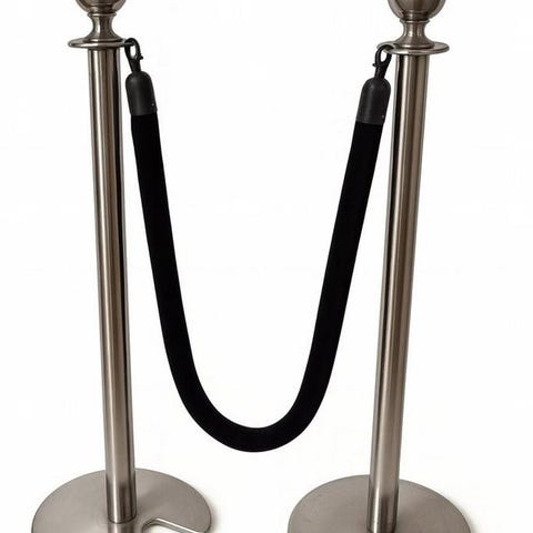Avspärrningssystem i mässing med 4 stolpar och två röda rep.