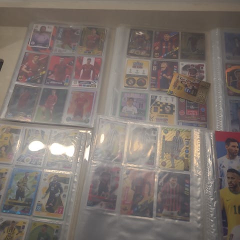 Bra skick, samling på fotbollskort. Finns lagmärken, rare glansiga kort. Blandat med jubileums kort och annat inkluderar samlar box i stål. 50+ kort