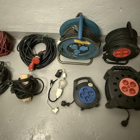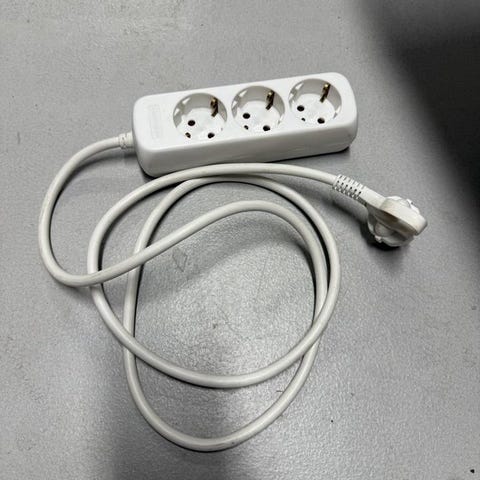 Praktisk vit förlängningskabel (5 meter) med 3 eluttag och jordad kontakt. Perfekt för hemmet, kontoret eller garaget.