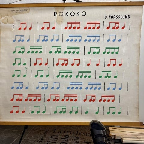 Fin Skolplansch med noter som heter Positivspelaren, en del av Nacka-serien av S. Körling