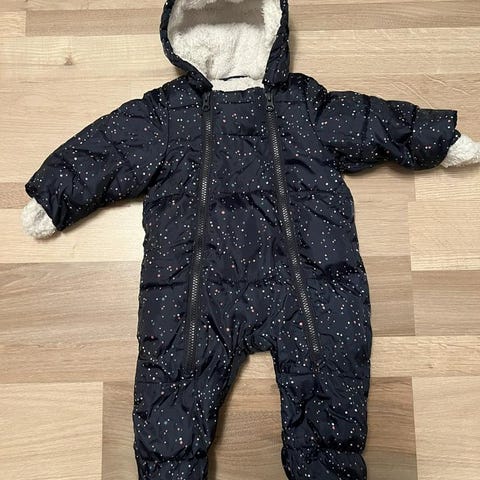 Mörkblå overall i vindfleece från Polarn o. Pyret i mycket fint skick. Storlek 68. Avtagbar luva, dubbla dragkedjor och ärmar och ben som går att dra över små händer och fötter. Jättebra plagg i princip året runt.