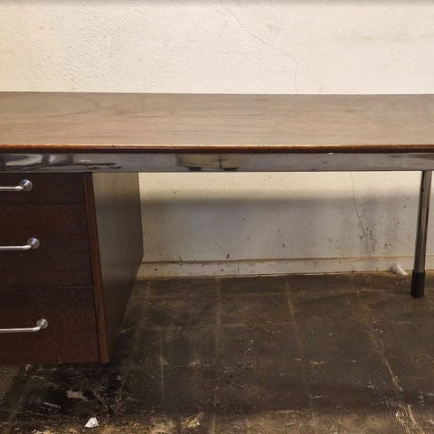 Stort höj-och sänkbart skrivbord från Kinnarps + 2st hurtsar. Använt skick med lite märken. Ena hurtsen har skadat handtag på övre lådan (se bild) och några lådor som är lite trasiga.