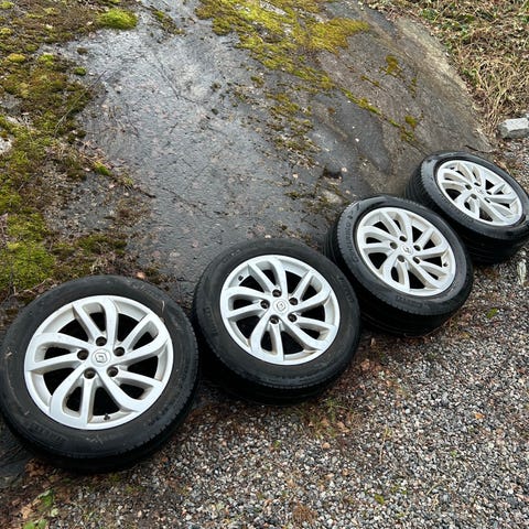 Sommardäck på original Renault lättmetallfälgar, 16''. Däcken och fälgarna är i mycket bra skick, och har förvarats på däckhotell hos BilBolaget i Gävle.