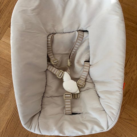 Setet är säkert och enkelt att använda och kan smidigt monteras på och av från Tripp Trapp®-stolen utan verktyg. En fempunktssele med skyddande axeldynor bidrar till extra säkerhet. Leksakshållaren gör att barnet kan ha favoritleksaken nära till hands både för att underhålla barnet och för att stimulera utvecklingen av dess motoriska färdigheter.