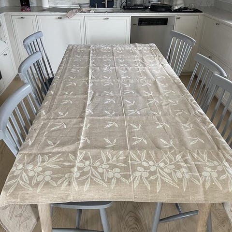 Broderad linneduk med spets 145x130cm