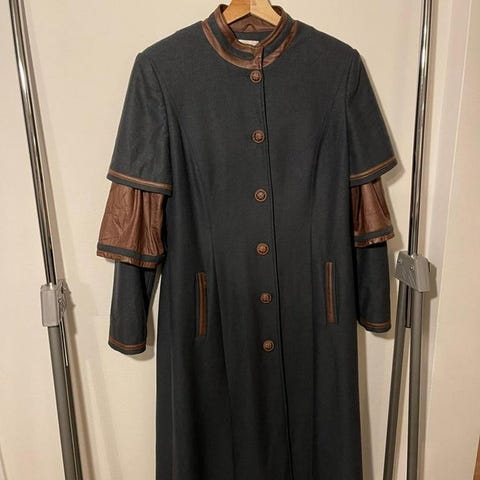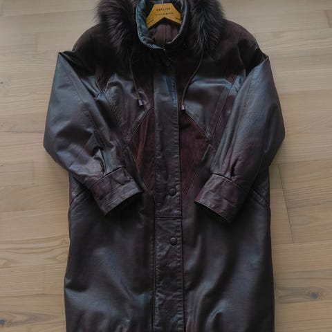 Turkis Tukku äkta läder vinterkappa med varmt foder samt luva i bra skick.