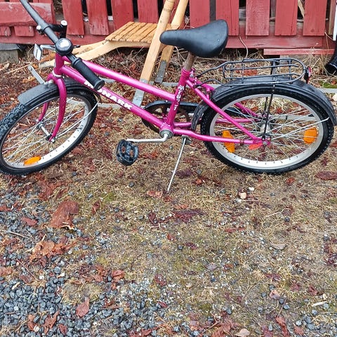 Säljer en Röd barn cykel som behöver lite kärlek till den som är händig, de som behöver fixas är bara hjulen på den annars felfri.