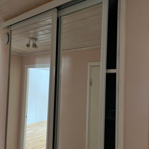 Skjutgarderob med spegelglas Elfa