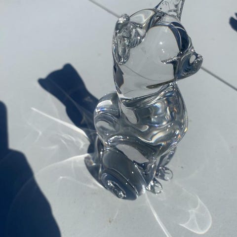 Liten häst med vagn i glas. Vagnen går ha något litet i