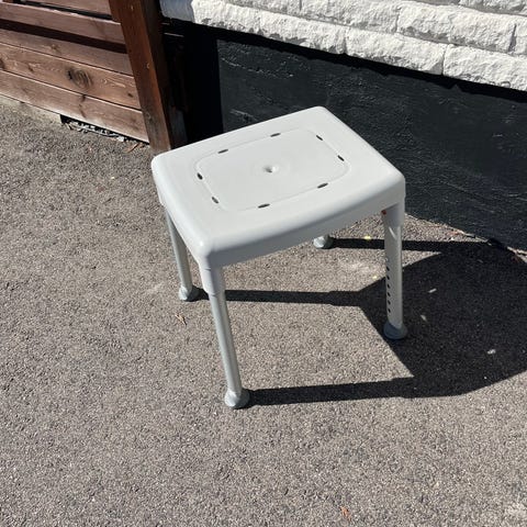 Etac duschpall smart ny/oanvänd säljes. Den rektangulära sitsen ger möjlighet till både en smalare sits med större djup alternativt en lite bredare sittyta. Yttermått i högsta och lägsta: 45,5–46,5 x 41–43 cm Sitthöjd: 42–57 cm Max vikt 150 kg
