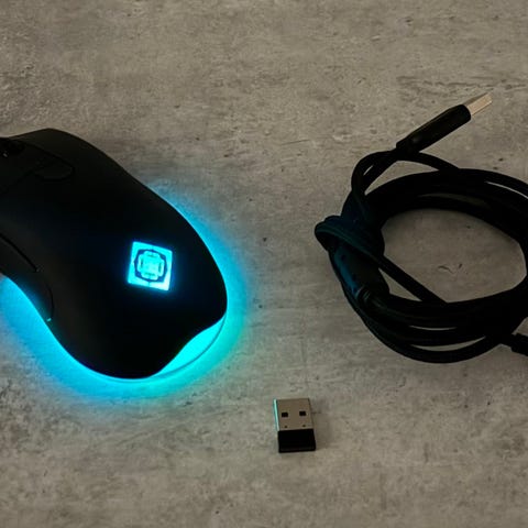 En helt ny trådlös ZON ergonomisk gamingmus i oöppnad förpackning.
