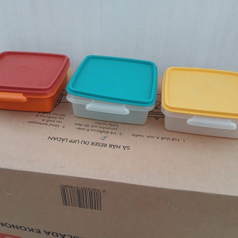Tupperware skålar med salladsbestick till.
