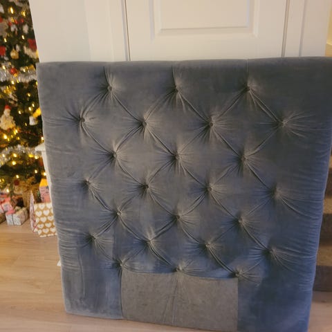 Hemmabyggd sänggavel av vit panel som passar 120 säng.