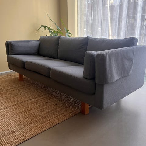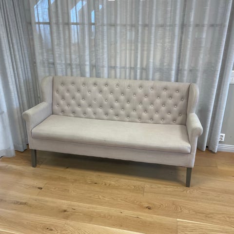Träsoffa med mönstrad klädsel
