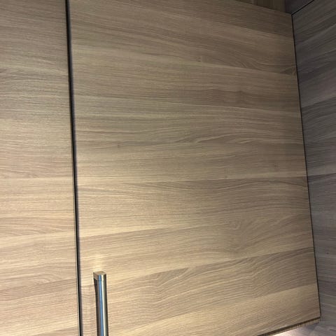 Laminatbänkskivai ljus ek. Metallkant ena långsidan samt kortsidorna. Mycket fint skick! Som nya.