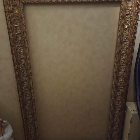 Guldfärgad spegelram.