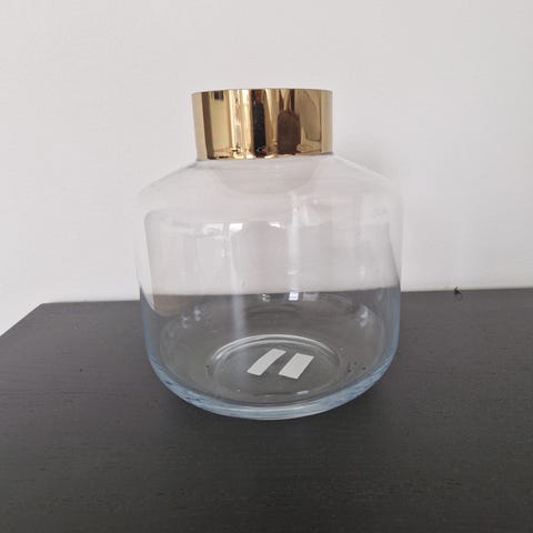 Säljer vasen KONSTFULL från IKEA. Den är designad av Ilse Crawford och har en klar glasdesign med ett mönstrat yttre som ger en skimrande effekt. Vasen är i mycket bra skick med inga anmärkningar.