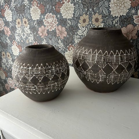 2 st krukor ca 27 cm höga.