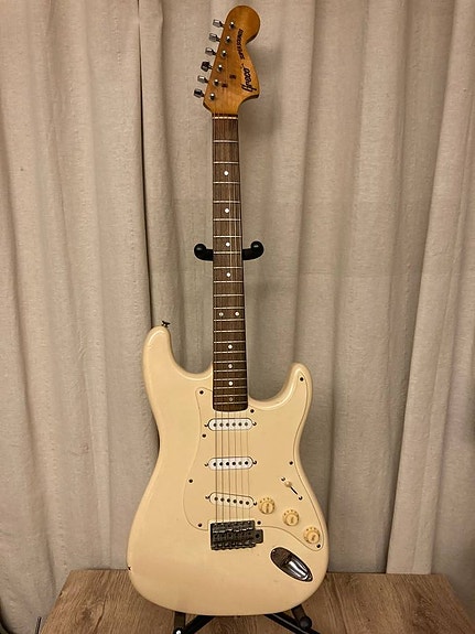 Japan vintage -80-tal. Revival serien är alltid säkert kort, påkostade i omsorg och material. Här en fin tele med bindings på kroppen och snygg sunburst. Ser ut att vara original även om den har SD pick up i stallet. Greco hade det i slutet av 80-talet men jag är osäker. En jättefin gitarr är det i allafall och bra variation mellan mickarna. Låter superbra och den är extrautrustad med en killswitch vilket kan vara kul om man har en feedback på gång då kan man cut it men det finns säkert fler användningsområden. Annars är den fullt fungerande med bra action och vikt. Faktura inklusive moms. Kan skickas.