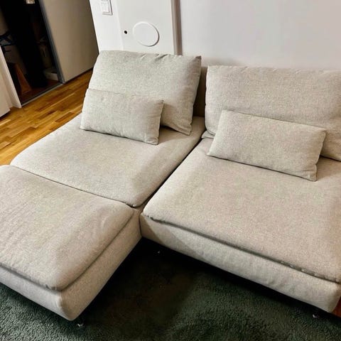 Säljer två stycken populära IKEA SÖDERHAMN-schäslonger i färgen Viarp beige/brun.