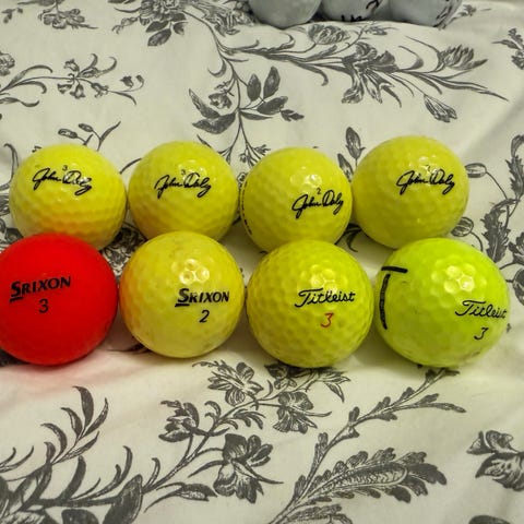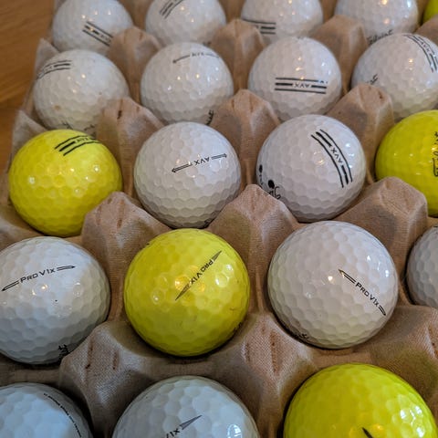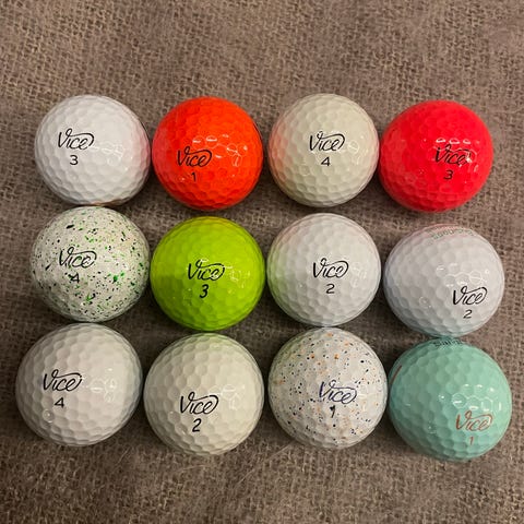 Min son säljer ett sortiment av golfbollar från Vice. Perfekt för golfaren som vill ha bland det bästa på banan. Tusch och reklam förekommer men kvaliten är genomgående mkt bra. Många av bollarna upplevs som helt nya, se bilderna. De är bollarna på bilderna som säljs. Årgången varierar. Bollarna är handtvättade.