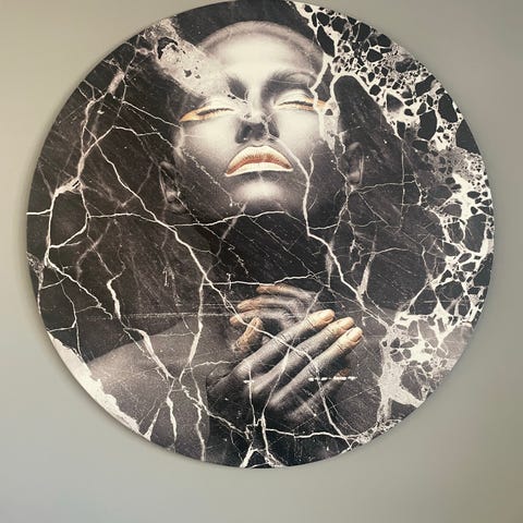 Svart ram med glas. Diameter: 22 cm. Gott bruksskick.