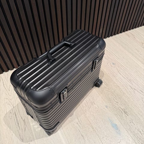 Kommer med axelrem och rem för att fästa på större Rimowa-väskor, perfekt för smink, småsaker eller som extra packning på resan. Väskan är i gott begagnat skick med minimala spår av användning – inga större repor eller skador.