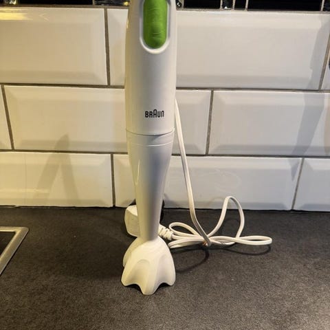 Knivar i ädelstål. 1,2 L skål. Mixer 1 L.