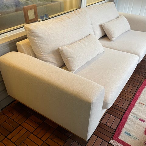 Outline 3,5-sitssoffa från danska Muuto är en elegant och tidlös möbelserie, med design av Andersson & Voll. Armstöd och rygg har smal utformning för att maximera sittytan och därmed komforten. Outline är byggd med stålram, träram, aluminiumben och kallskum/fjäder fyllning Tyg Rimix 163 Kromade ben Bredd: 255, Djup: 84, Höjd: 69,5 Sitthöjd: 40 cm Mycket bra soffa i hög kvalité