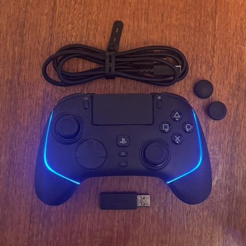 Trådlös Razer Wolverine V3 Pro Som funkar både till Xbox och PC. Väldigt skönt grepp och bra känsla i knappar och spakar. Spelar för lite numera för att ha kvar den. Köpt på Webhallen i feb, kvitto finns.