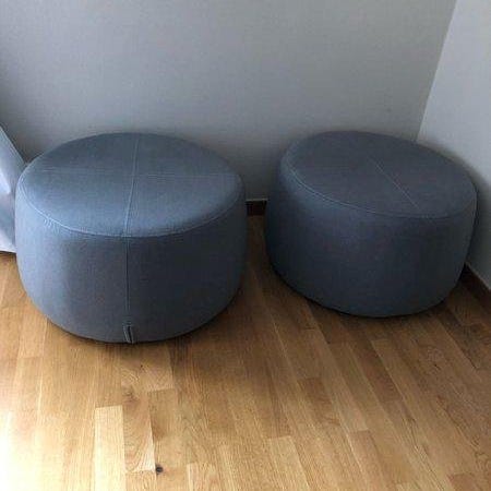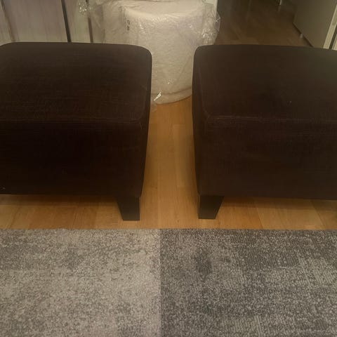 Fotpall i skinn. Dynans storlek 53 x 40 cm. Höjden är 40 cm som högst. Hämtas i Linköping.